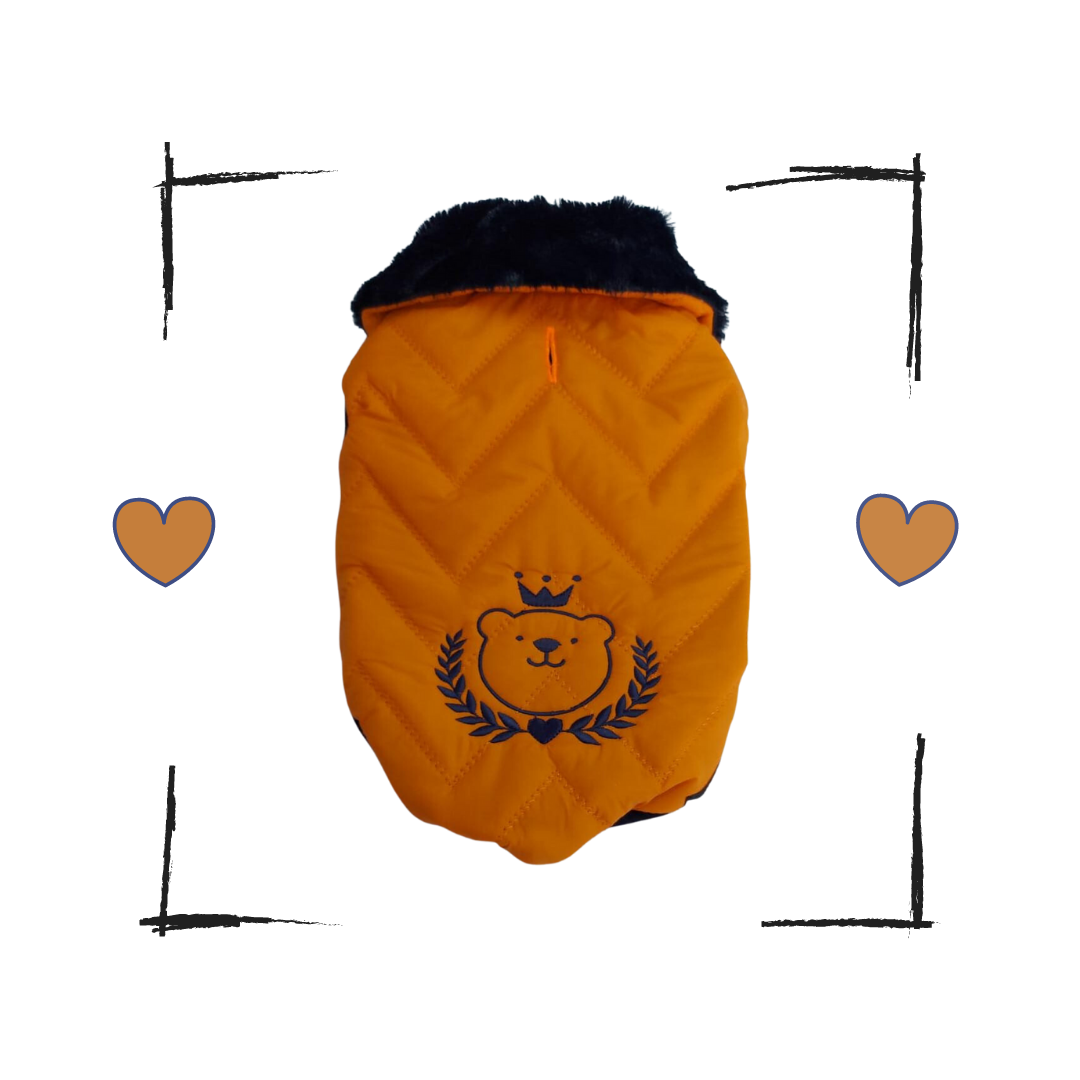 Casaco matelassê em poliamida com gola de pelúcia macia. Bordado. Possui passagem para guia. Fechamento com velcro.